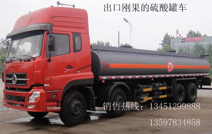 發(fā)布時間:2012-10-13 10:13:53 瀏覽量:次2010年7月27日,我公司出口了一臺硫酸罐車到剛果**,此車采用東風天龍前四后八的的底盤,罐體20立方米車輛圖片如下
