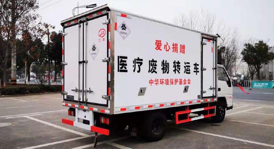 湖北江南加班生產(chǎn)醫(yī)療廢物轉(zhuǎn)運車支援前線抗疫情戰(zhàn)爭