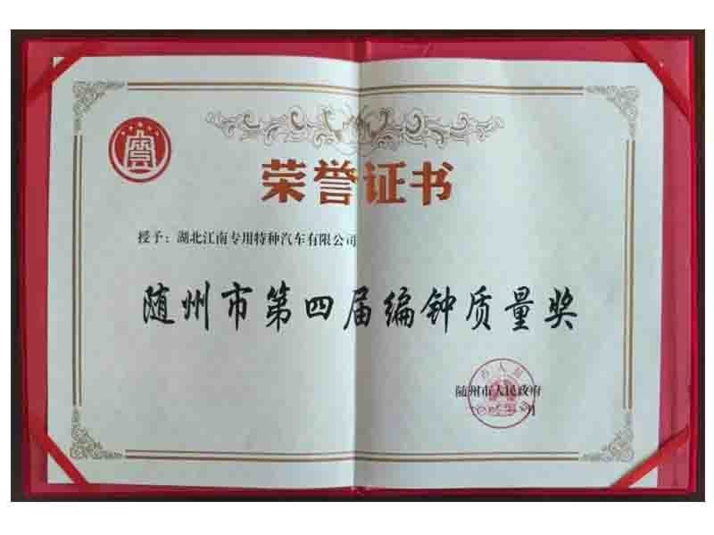湖北江南專用特種汽車有限公司經(jīng)過申報推薦、資格審查、資料評審、現(xiàn)場評審、問詢答辯、綜合評價、審議公示等程序,被授予“隨州市第四屆編鐘質(zhì)量獎”。